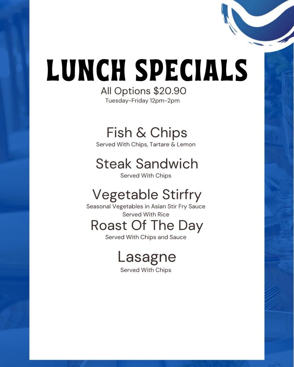 All Tap Beer $6.50, House Wines $5.00 and Soft Drink $3.50